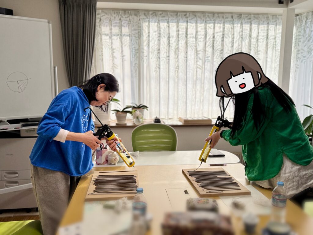 お昼休憩の後はお線香作り。