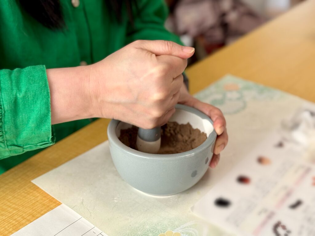 香料は、常温、温めたとき、焚いたときでは香りの立ち方が変化します。乳鉢の中の香りと実際に使うときの香りは違うので、その都度温めて確認しながらの調合となります。