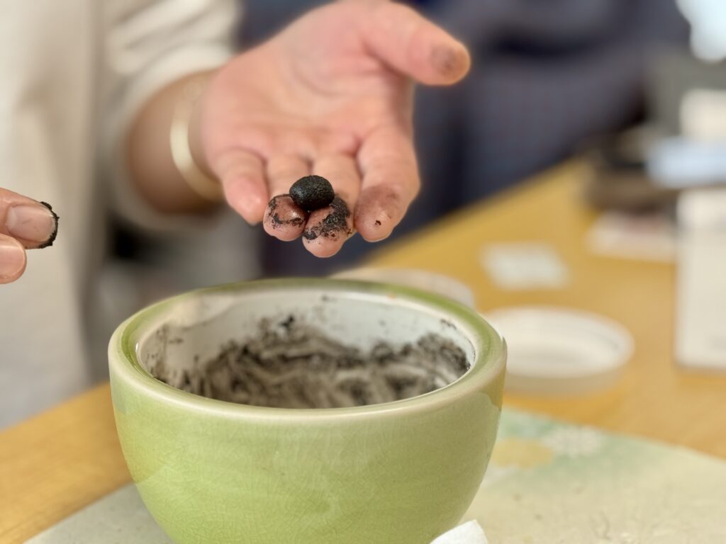 今回は、練香調合かお線香調合をご自由に選んでいただきました。